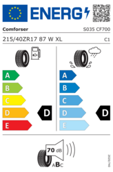 Pneu ultra haute performance le Comforser CF700 215/40 ZR17 87W XL M+S au profil asymétrique assure tenue de route impeccable et une maniabilité précise. Les 4 rainures longitudinales profondes assurent le drainage et réduisent le risque d’aquaplanning à haute vitesse. La gomme en silicium assure longévité et tenue de route. Les lamelles centrales et latérales, de profondeurs variées, réduisent le bruit.